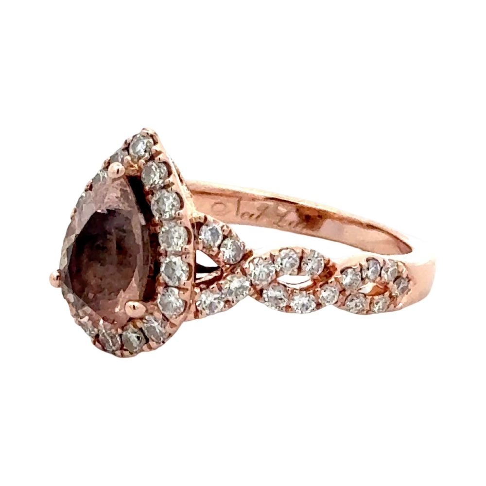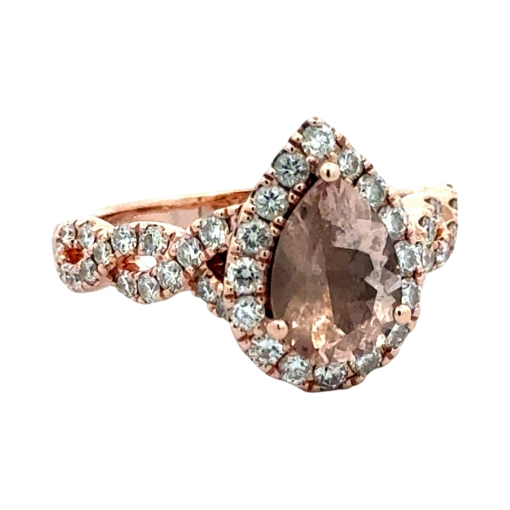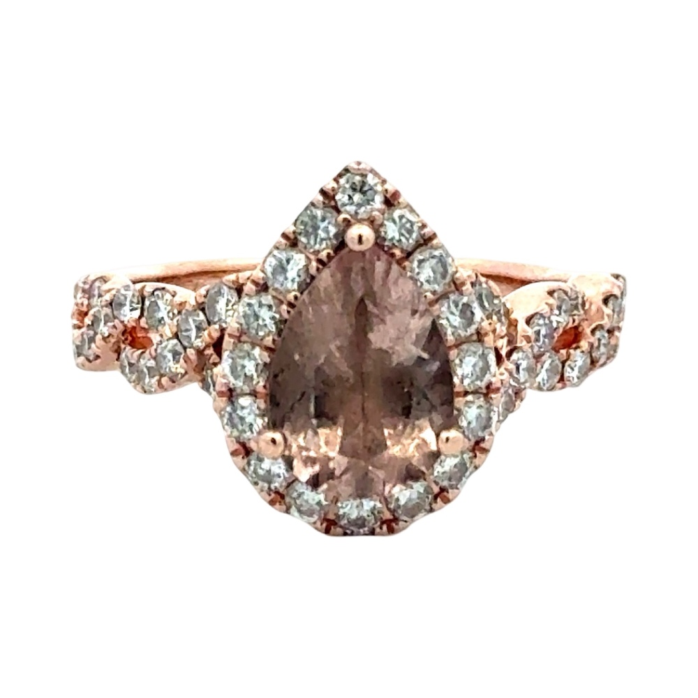 Ladies 14K Rose Gold 1.0CTW Diamond and Pear Morganite Gemstone Ring SZ:6