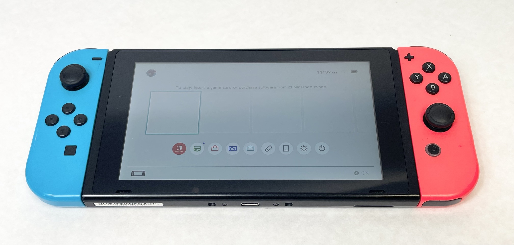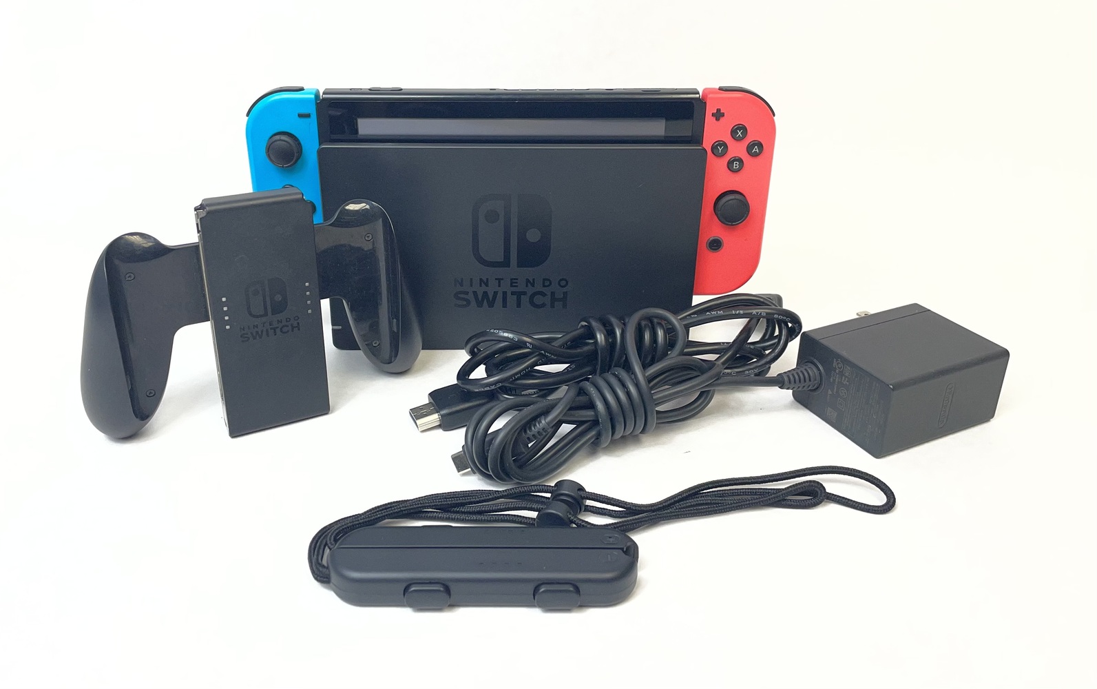 - Includes Console, Dock, Joycons, Joycon Grip, Wrist Straps, Power Supply Cord, And HDMI Cable