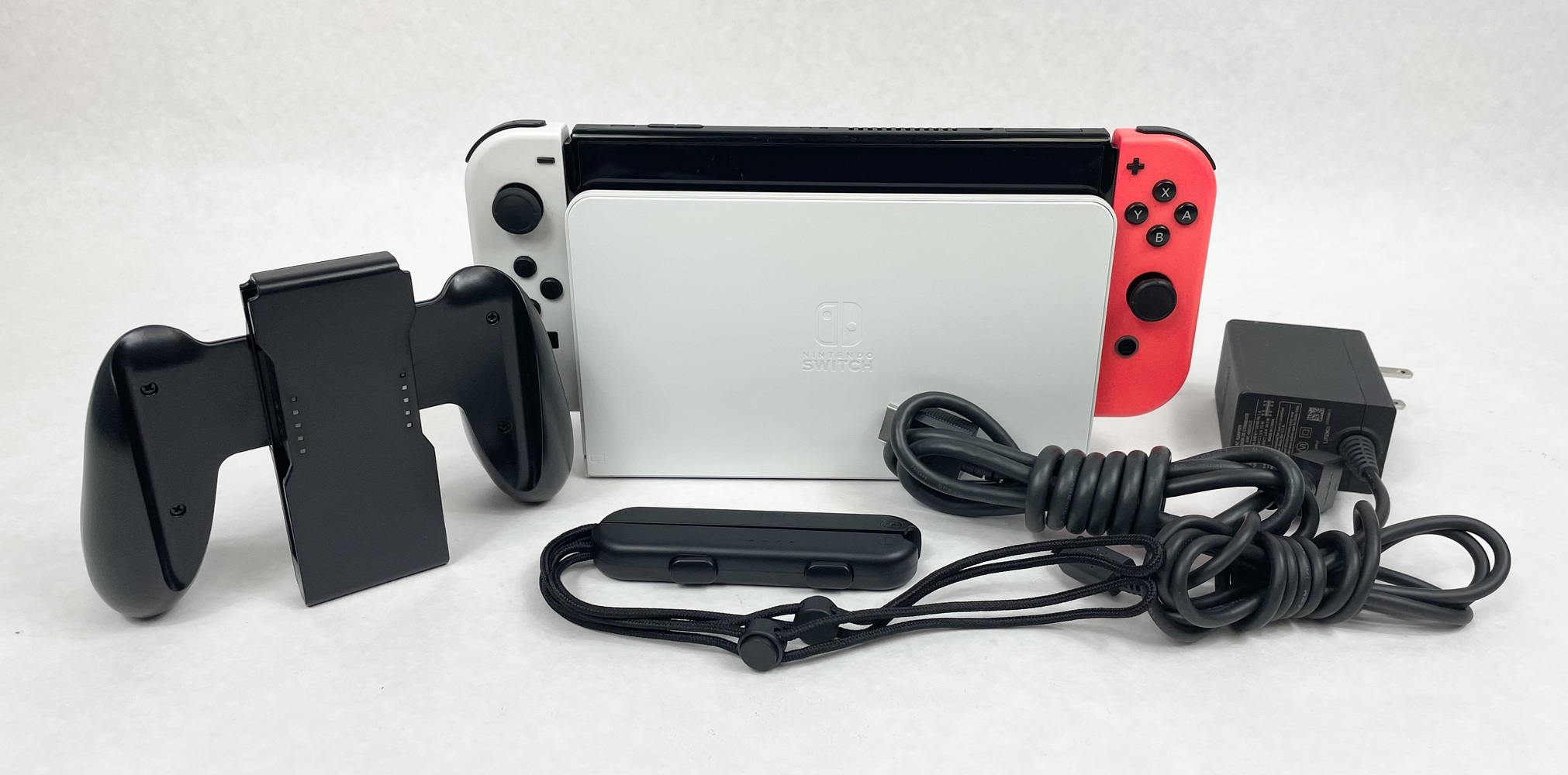 - Includes Console, Joycons, Joycon Grip, Wrist Straps, Power Supply Cord, And HDMI Cable