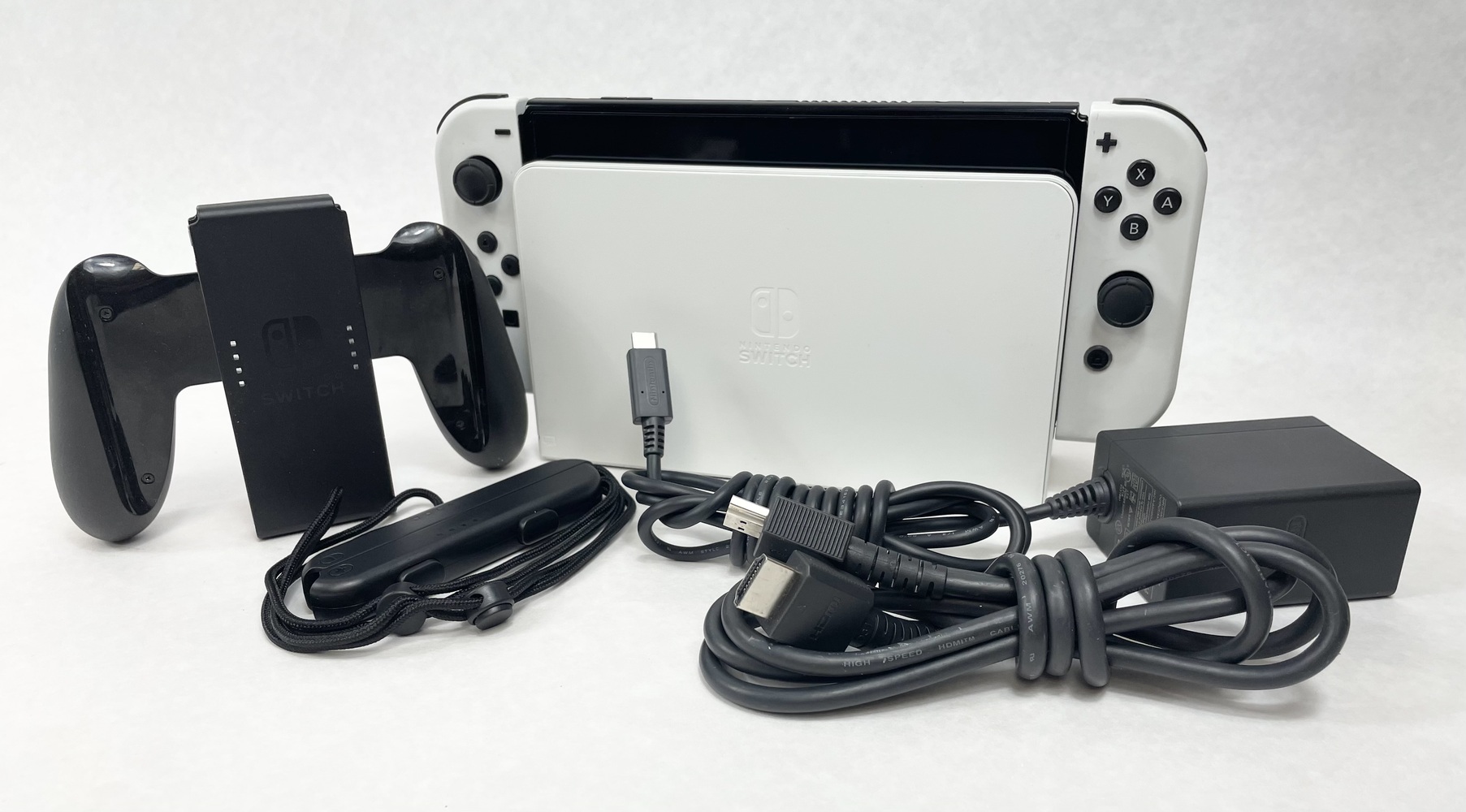 - Includes Dock, Joycon Grip, Wrist Straps, Power Supply Cord, & HDMI Cable