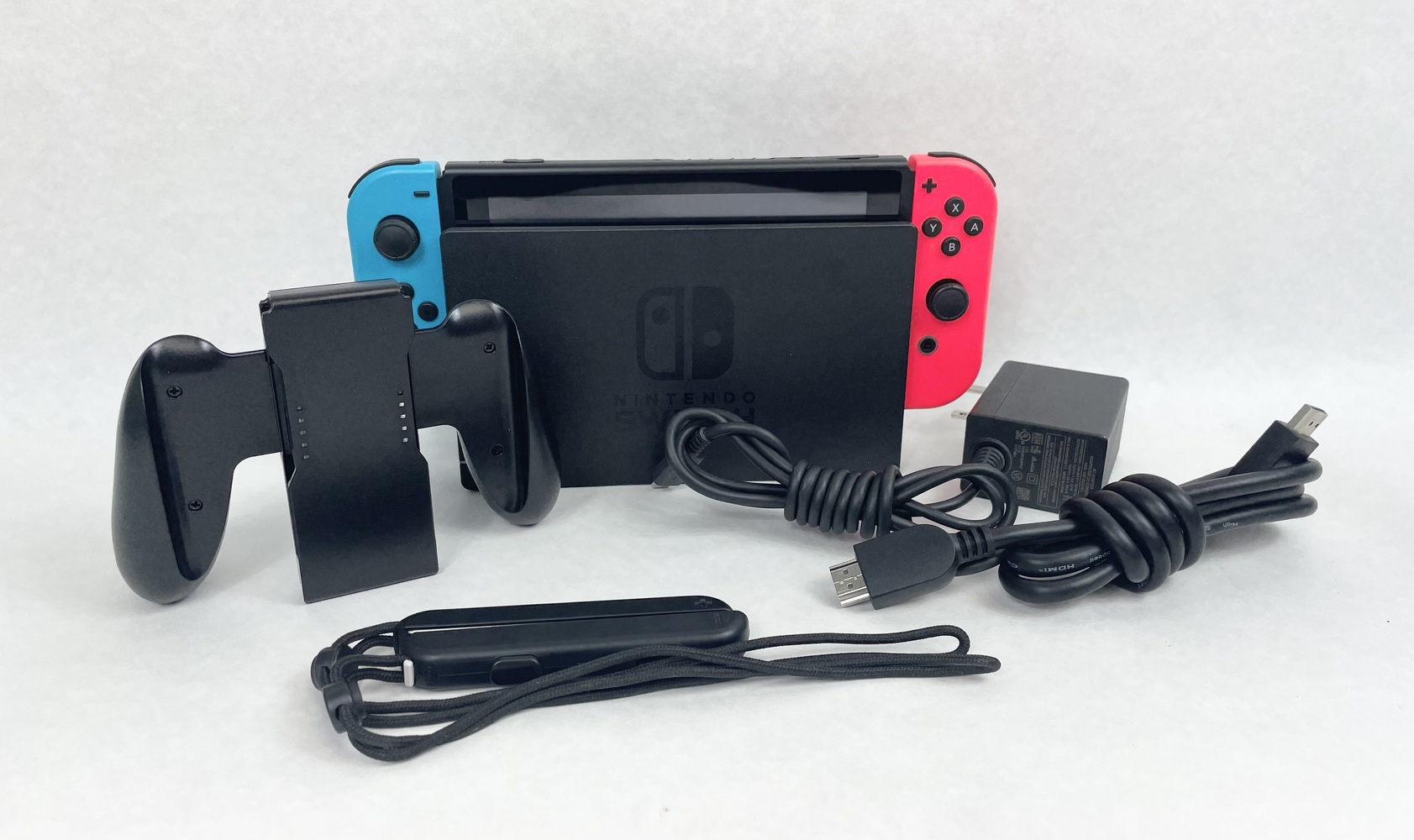 - Includes Console, Joycons, Joycon Grip, Wrist Straps, Power Supply Cord, And HDMI Cable