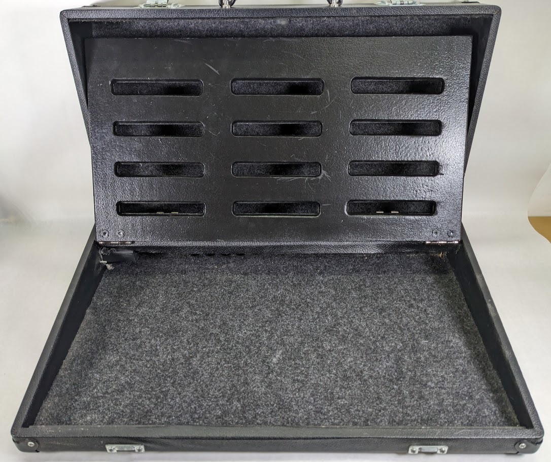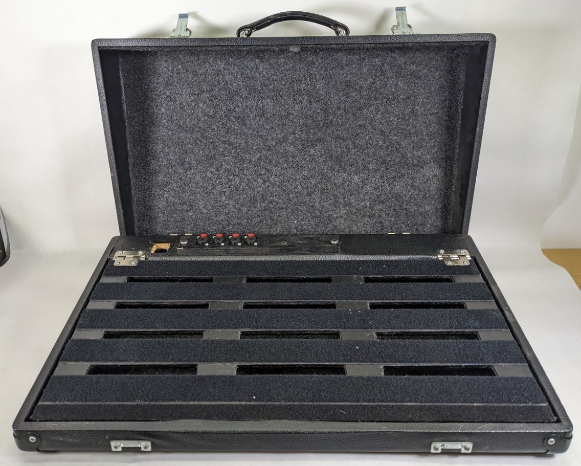 This pedalboard has been fully cleaned, and is perfectly functional. There are some definite signs of previous use, such as some cosmetic imperfections and blemishes on the outside of the case but is freshened up for it's next owner. Does not include any cables, board/case only. Please see all photos for exact condition.