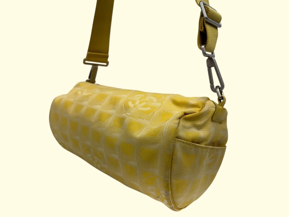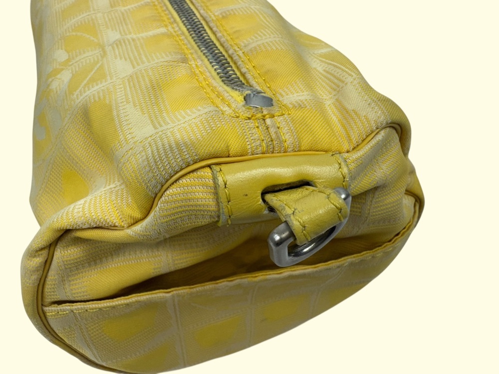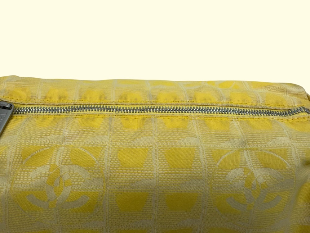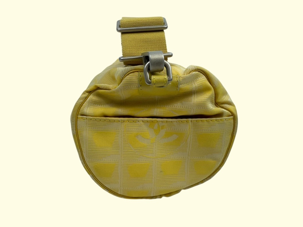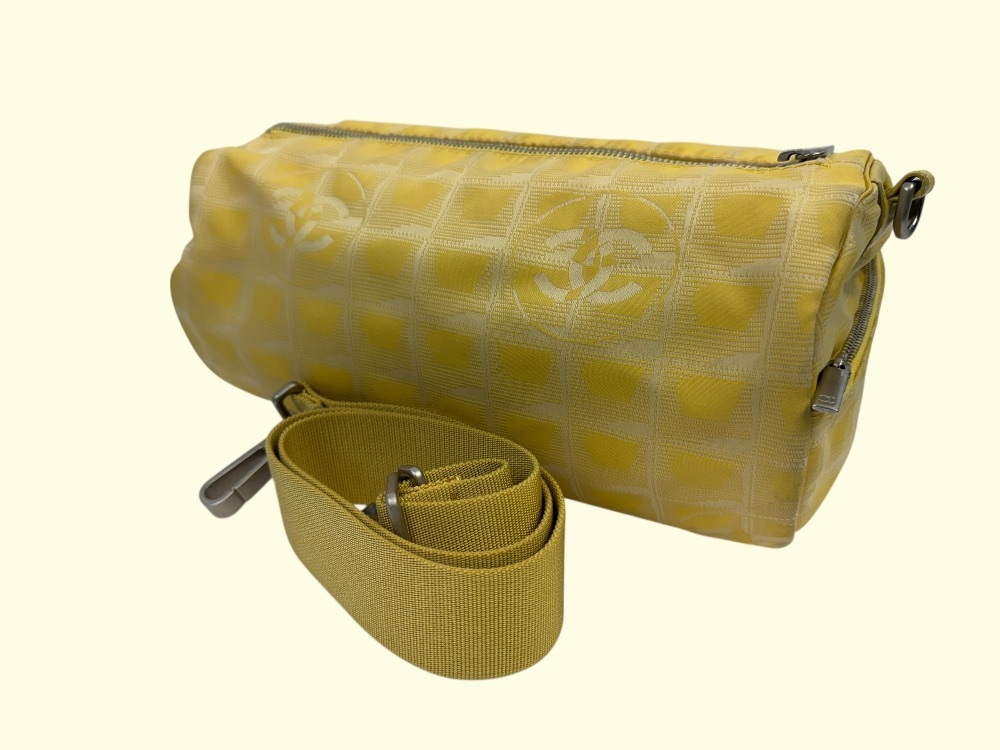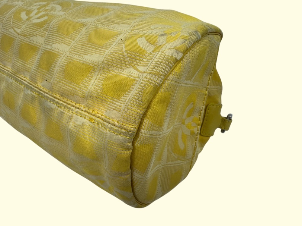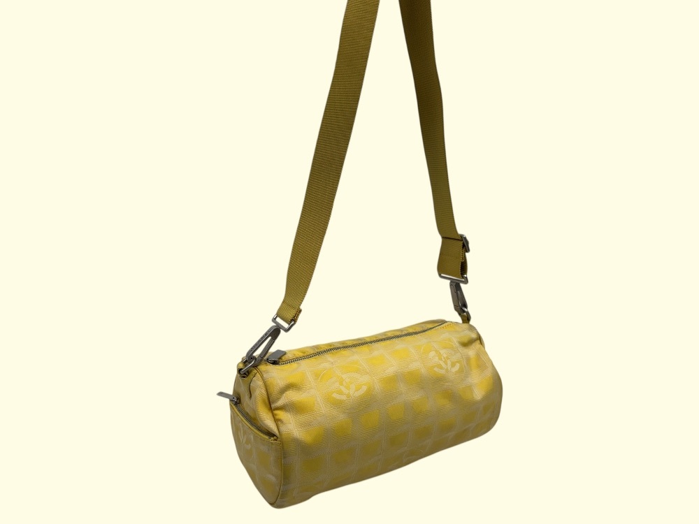Chanel Nylon Printed Barrel Travel Bag Clutch Handbag Yellow