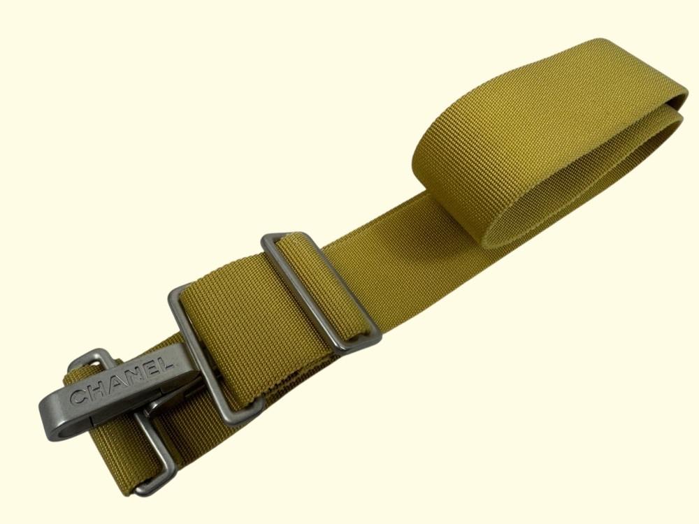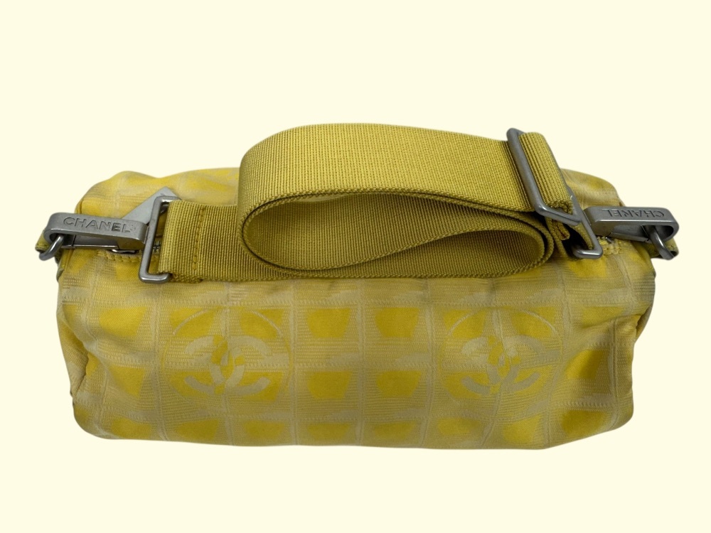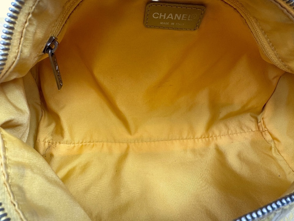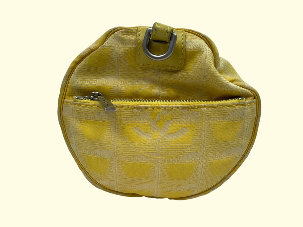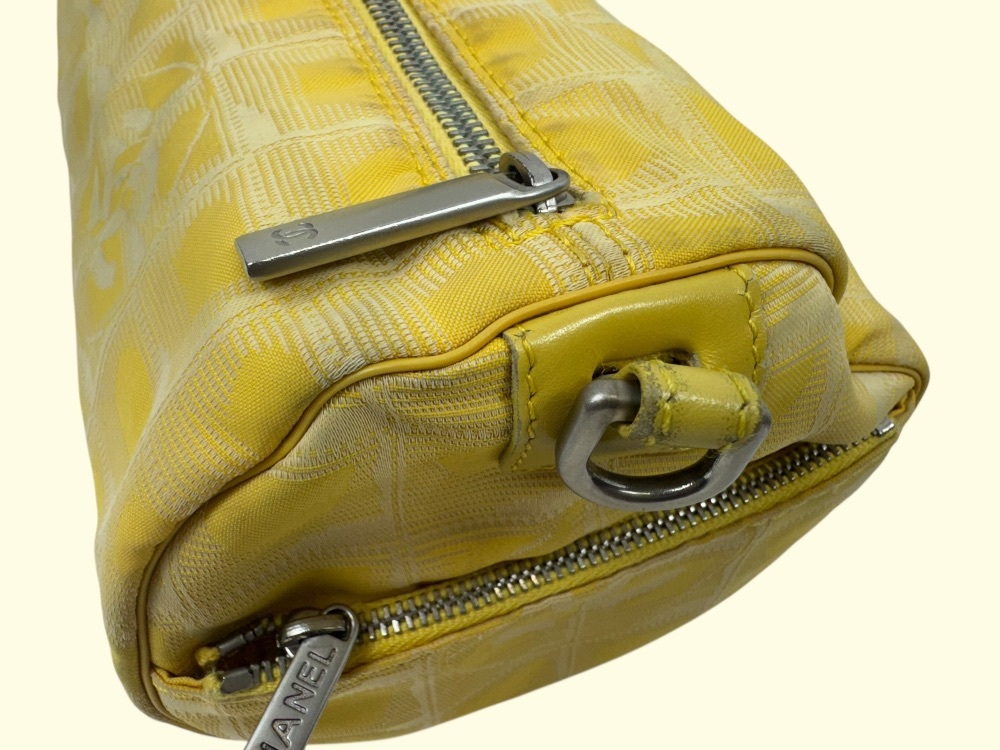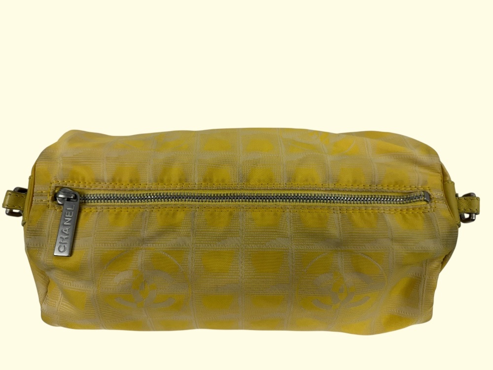 Chanel Nylon Printed Barrel Travel Bag Clutch Handbag Yellow