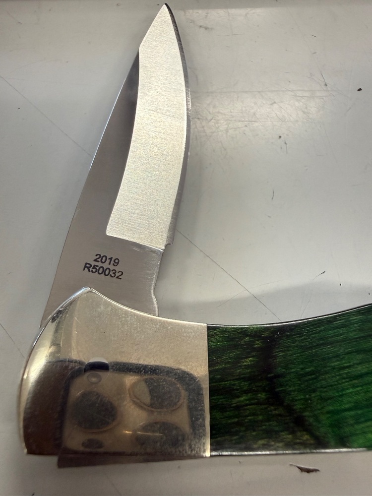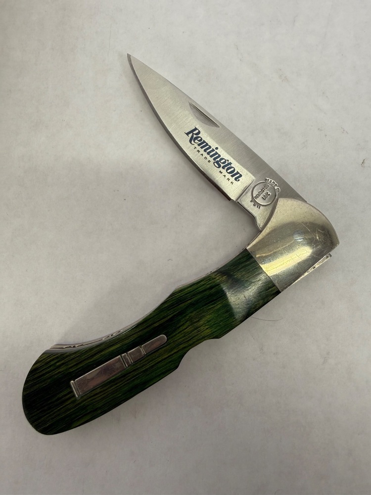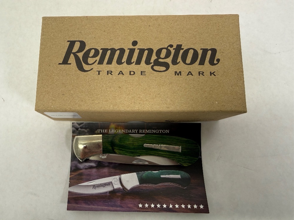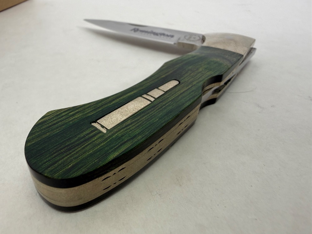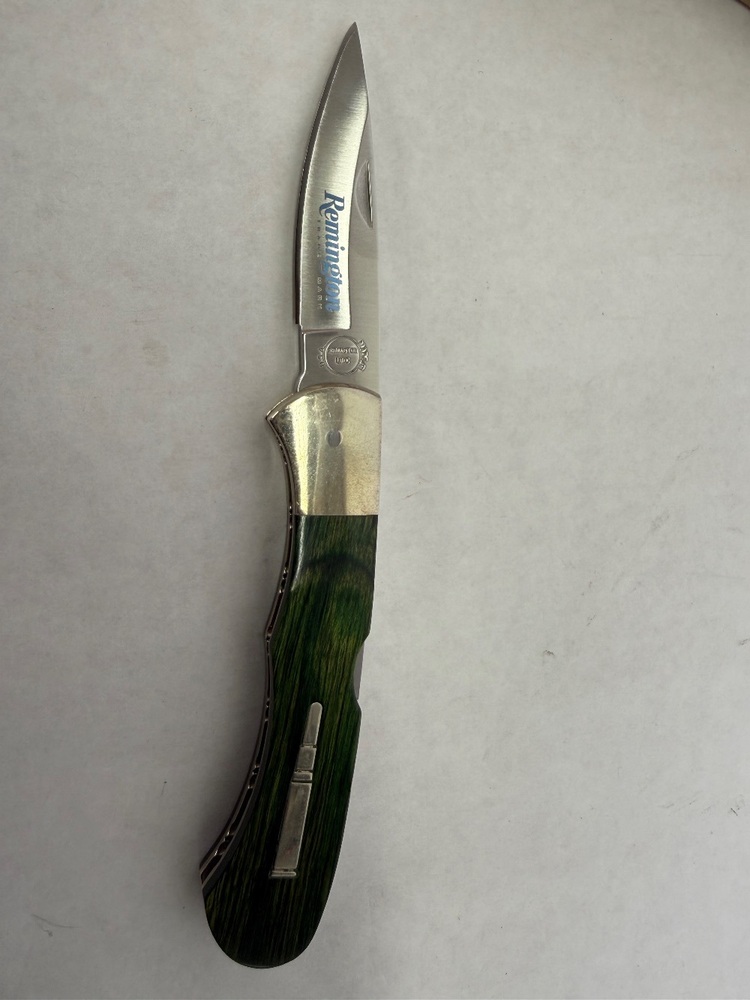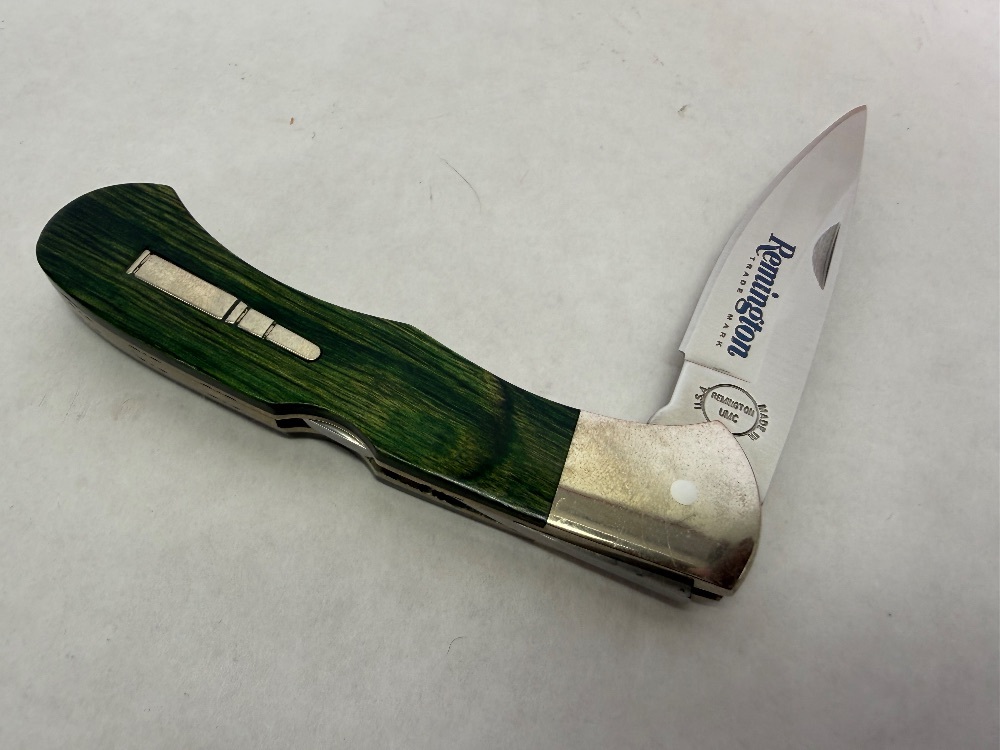 The Remington 2019 R50032-B Limited Edition Bullet U.S.A. Knife is a rare, collectible item. Boasting superior craftsmanship, it features a sharp blade and a intricate handle. This unique, made-in-the-USA piece is perfect for collectors and knife enthusiasts alike. Item quantity is limited, enhancing its exclusivity.