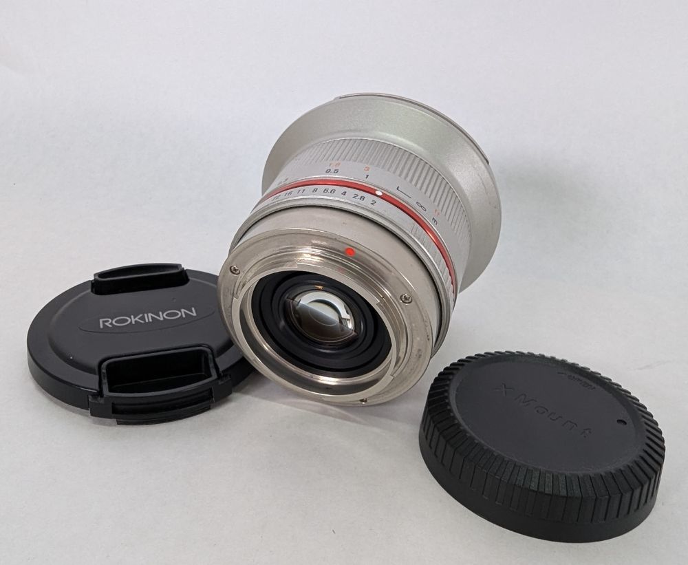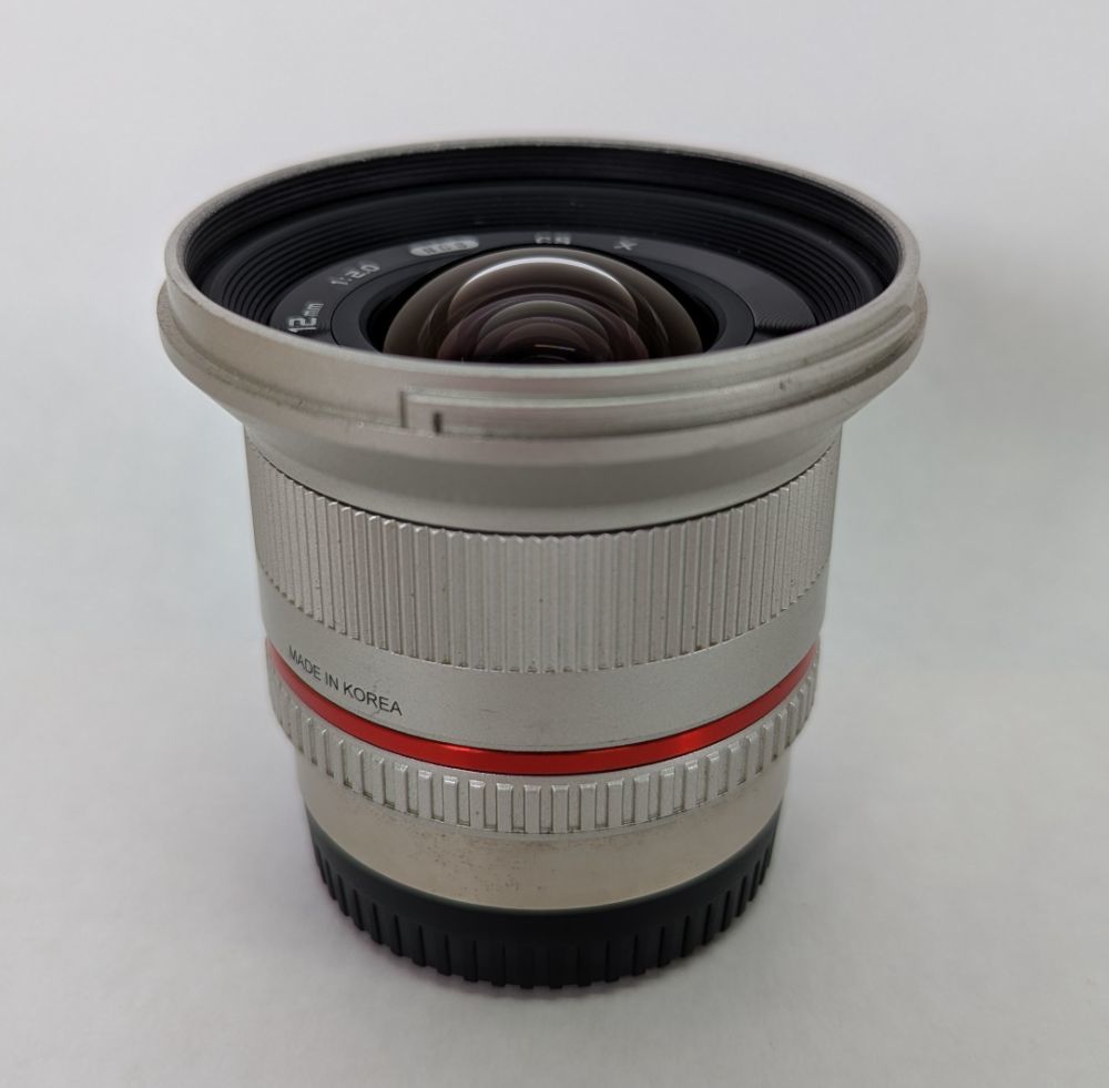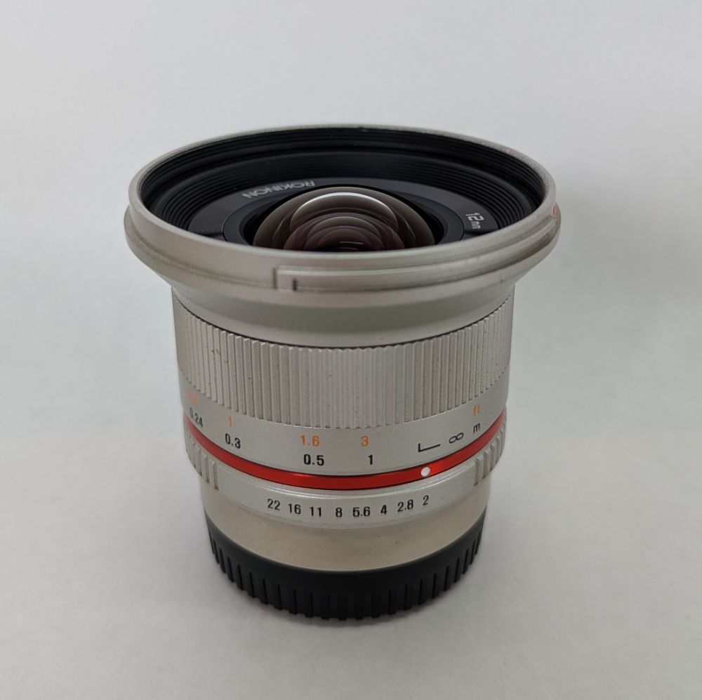 This Rokinon 12mm Manual Focus Wide Angle Lens is in very good cosmetic condition, showing some general signs of previous use on the body, but still looks and works great. The glass is in excellent condition with no scratches or issues to note. This is compatible with Fuji X-Mount Cameras.