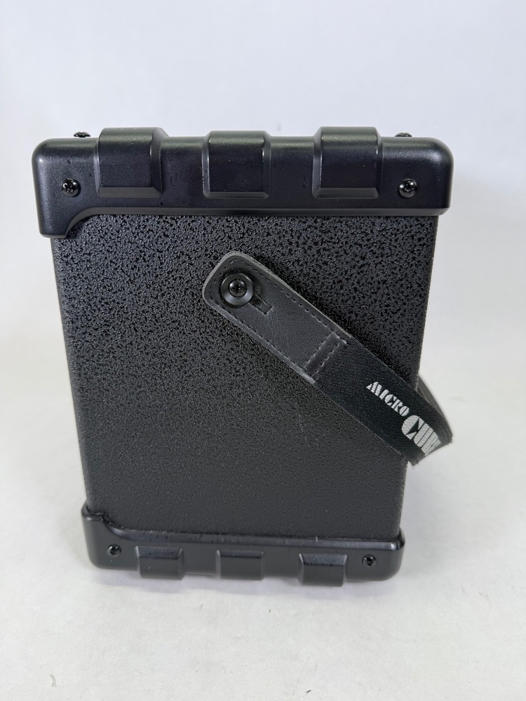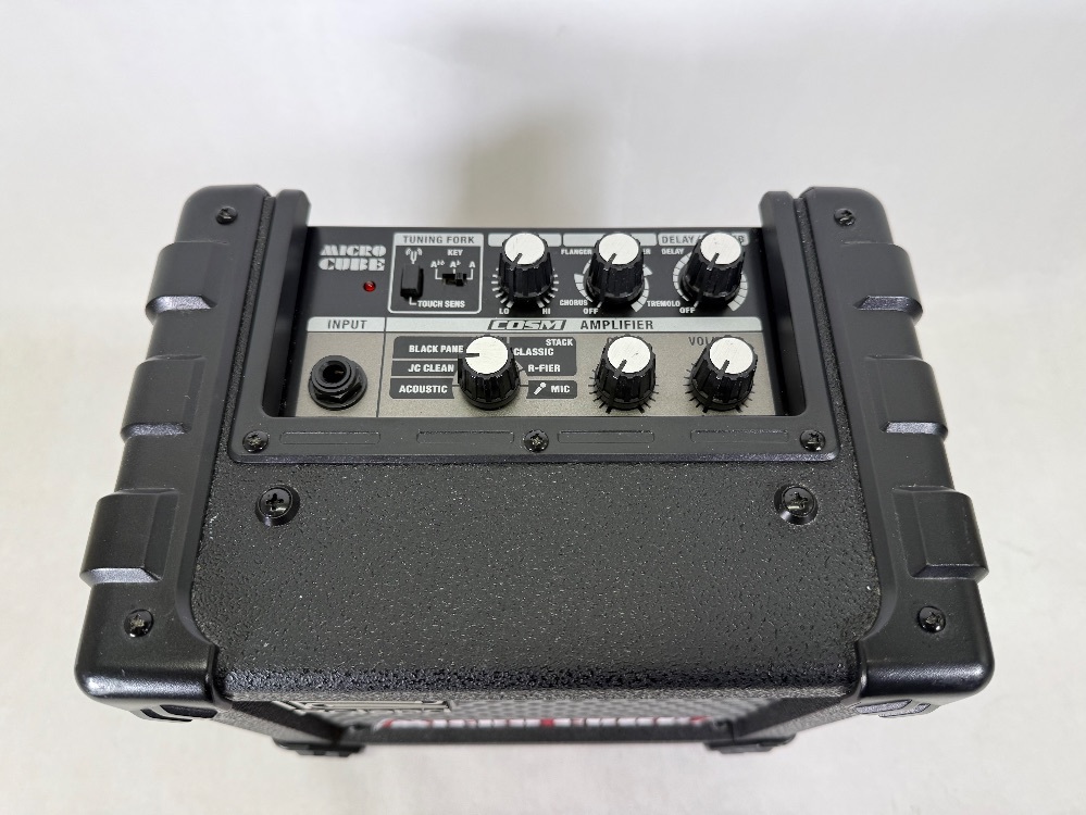 The Roland Micro Cube is a portable, 2-Watt guitar amplifier with a 1x5 speaker. It features eight DSP effects, eight COSM amplifier models, and a built-in chromatic tuner. Notably, it comes with a recording/headphones output and runs on batteries or AC power, making it perfect for travel or practice.