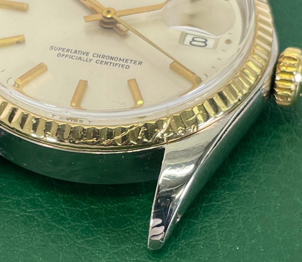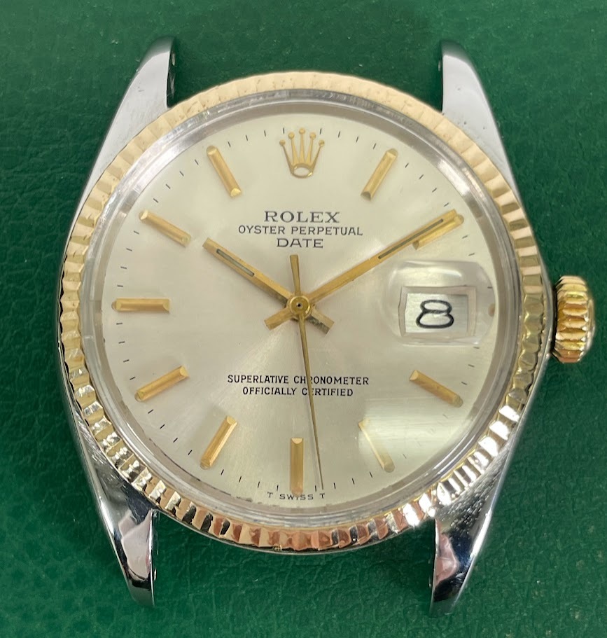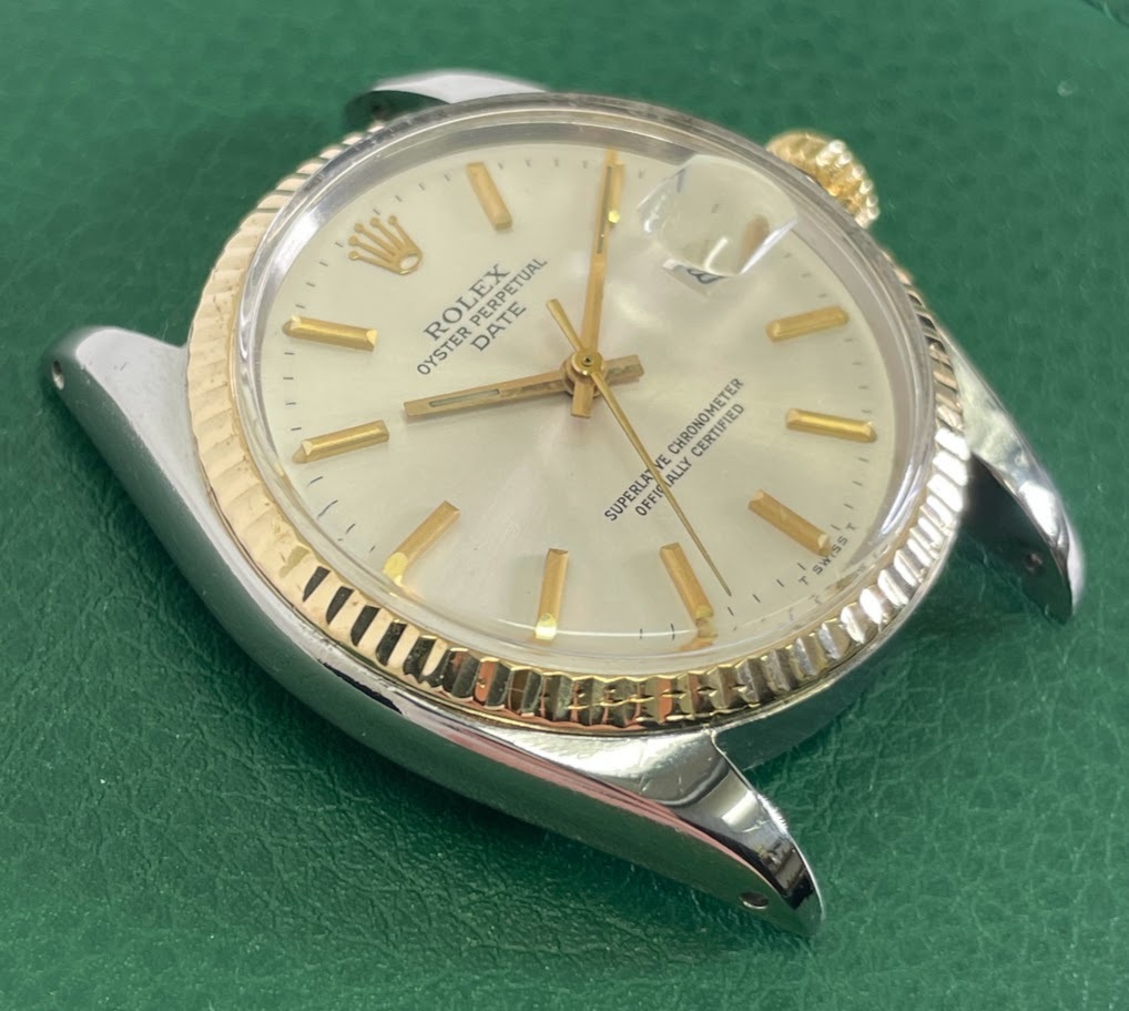 The 1970 Rolex 1500 for sale is in decent shape for it's age. There are a few dings to the bezel near the 5 o'clock position, but the case and crystal are in great shape! The only wear to the case can be seen on the underside of the lugs. Unfortuantely no box, papers, or service history are included with the watch.