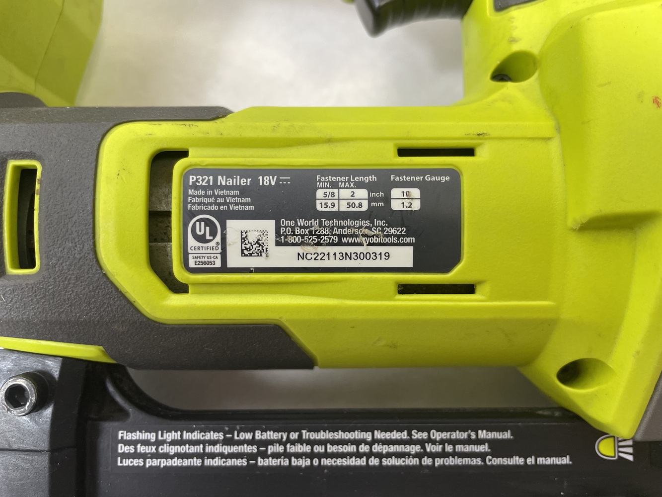 Ryobi P321 18V 18-Gauge Cordless Brad Nailer (Tool Only)