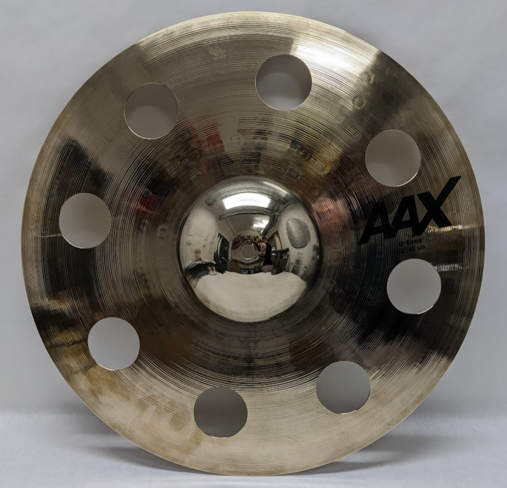 The Sabian AAX O-Zone 18/45cm Crash Cymbal features multi-holed design delivering bright, raw sound. Made from B20 durable bronze alloy, provides quick response ideal for live performances. Offers sound projection with tonal clarity in all volume levels. Suitable for music ranging from pop to rock.