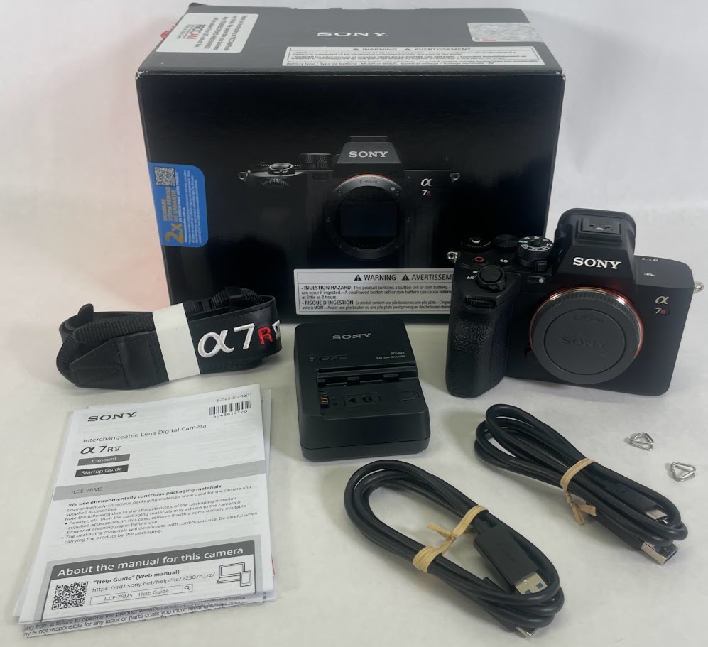The Sony Alpha 7R V for sale is preowned but in excellent overall condition showing only minor wear consistent with normal use. It was professionally owned and very well taken care of with only 1738 Shutter actuations! Included is the original box, battery, charger, cables, strap, and paperwork pictured!
