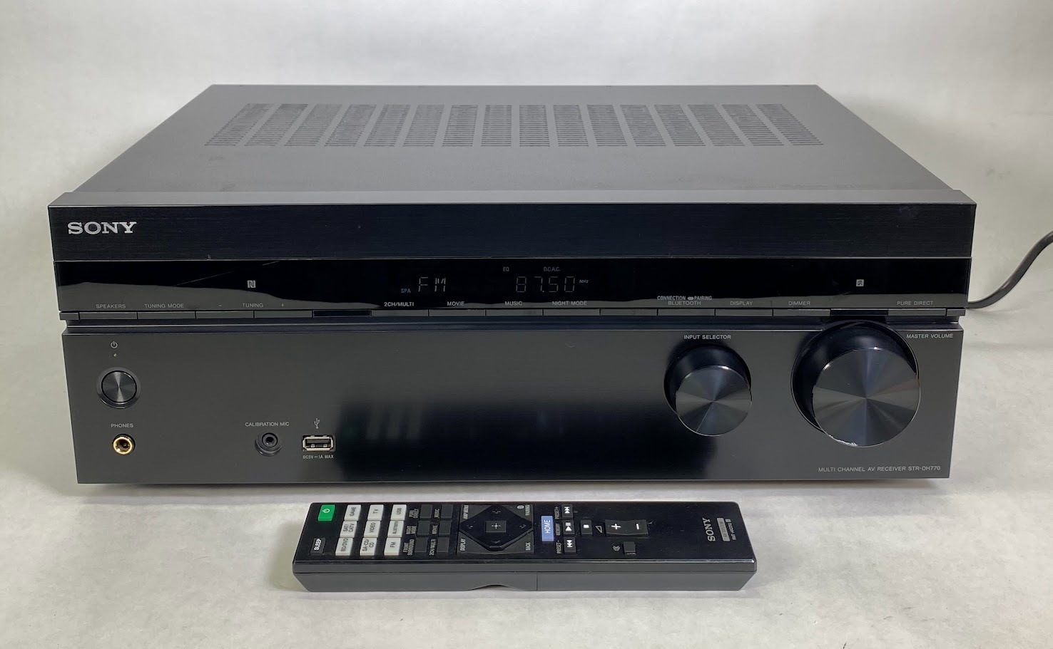 The Sony STR-DH770 Home Theater Bluetooth Receiver has been tested, cleaned and is ready for sale. Includes Sony STR-DH770 Receiver with Original Remote. The Sony STR-DH770 Home Theater Bluetooth 4K HDMI AV Receiver is in Very Good working and cosmetic condition.