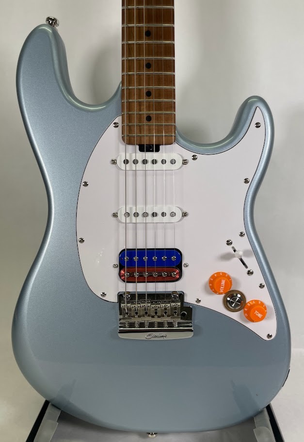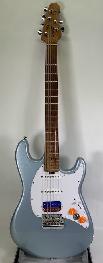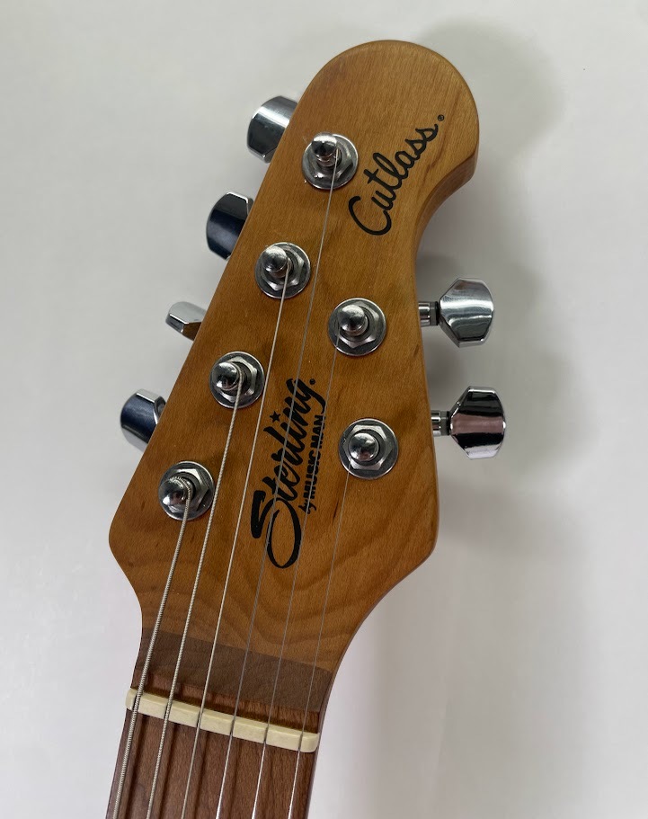 The Sterling Cutlass for sale is used, but in good overall condition showing only minor signs of wear. There are a few scuffs and scratches to the body, but nothing major thats easily noticable. It has been customized with a Planet Tone Custom Defiance Elite Humbucker and kill switch. The guitar has been fully tested and is in perfect working order!