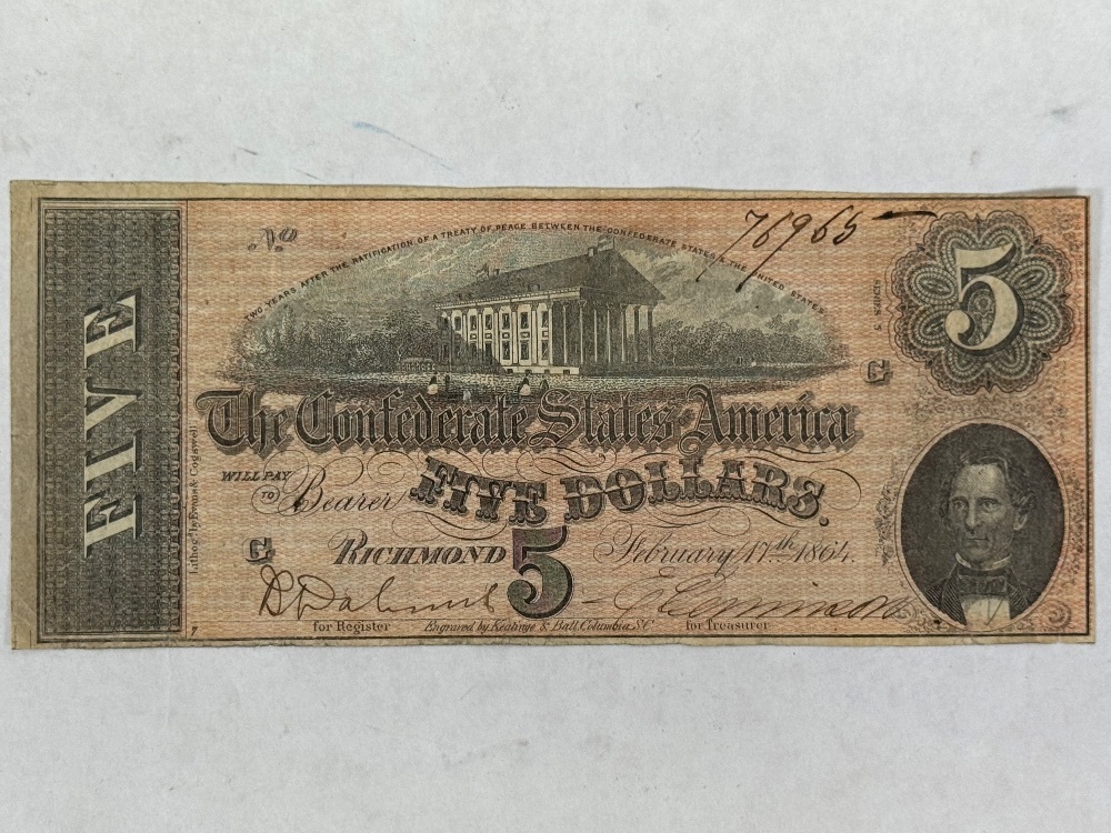 The Confederate States of America 1864 $5 Richmond Note