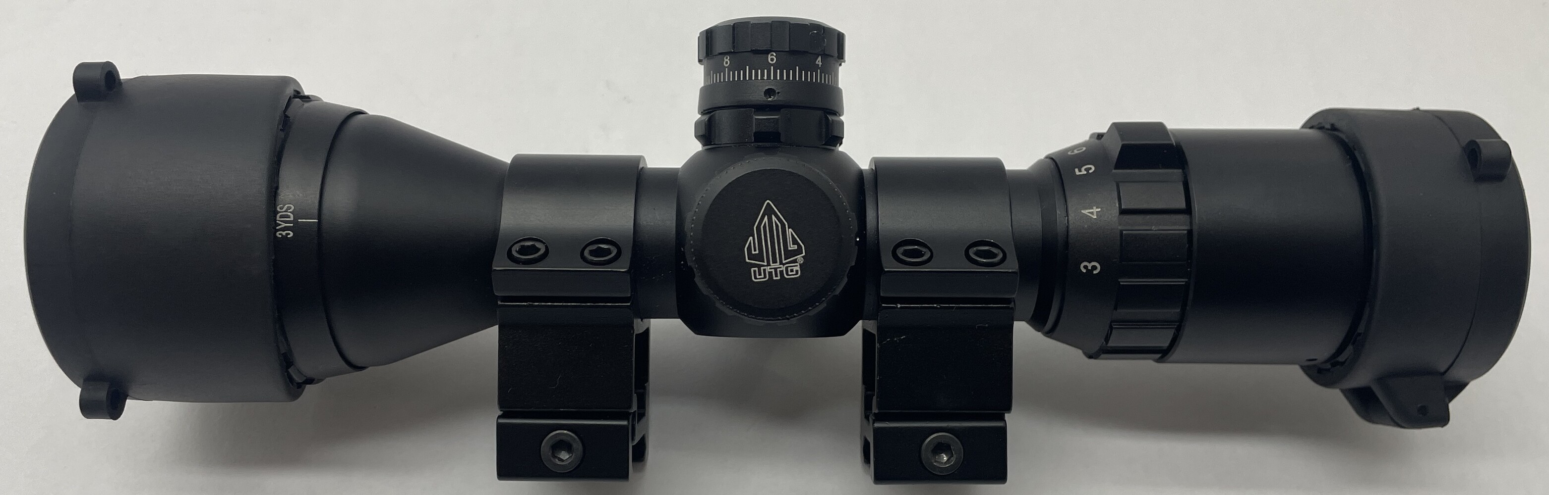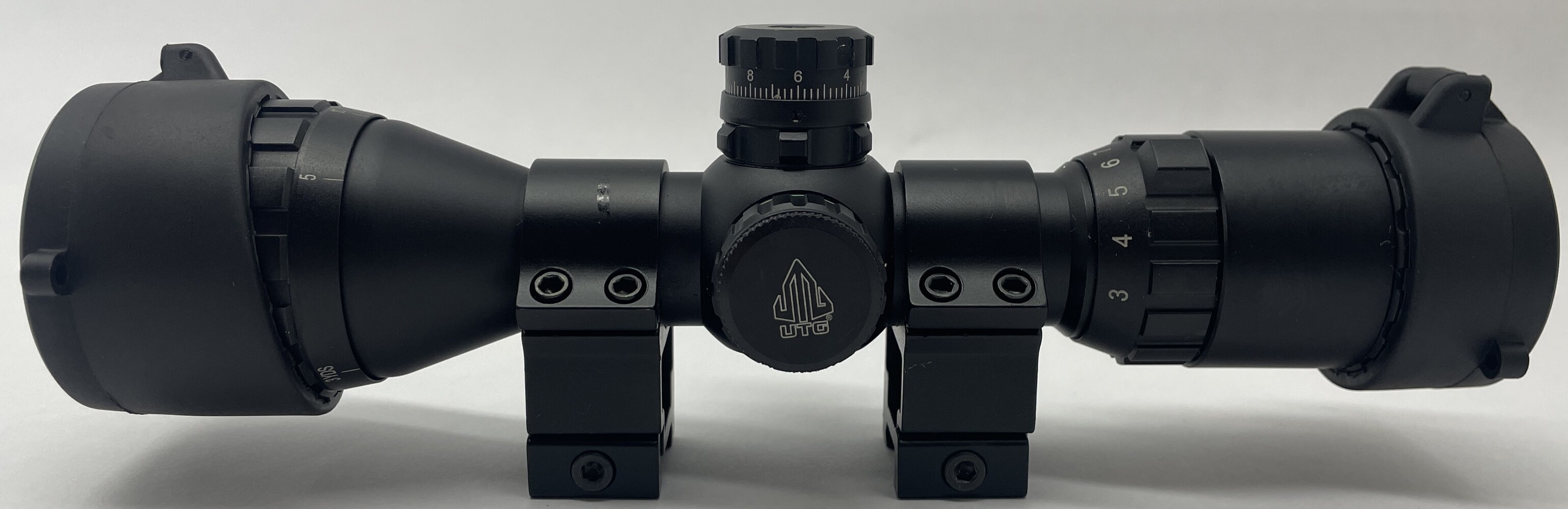 UTG 3-9x32 BugBuster Scope.Tested and functions as intended. Featuring AO, RGB, and Mildot. Red/Green Dual Illumination for different weather and light conditions, and wide angle view adjustable from 3 yards. Complete with 2" Sunshade, High Quality Flip-open Lens Caps and Quick-detachable Rings. Scope only. No box. Check photos for full physical conditions of this product.