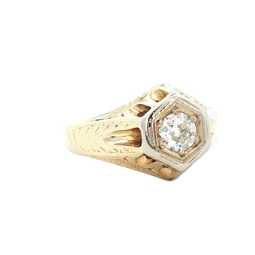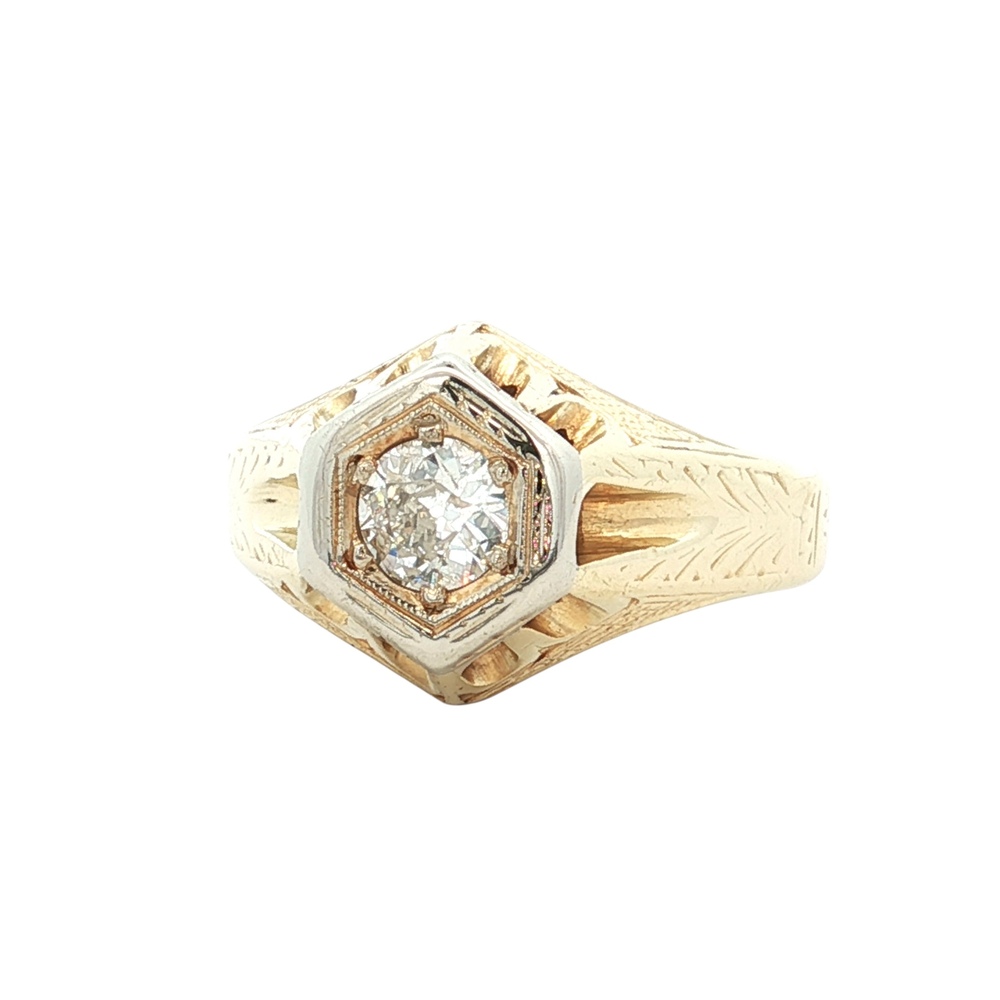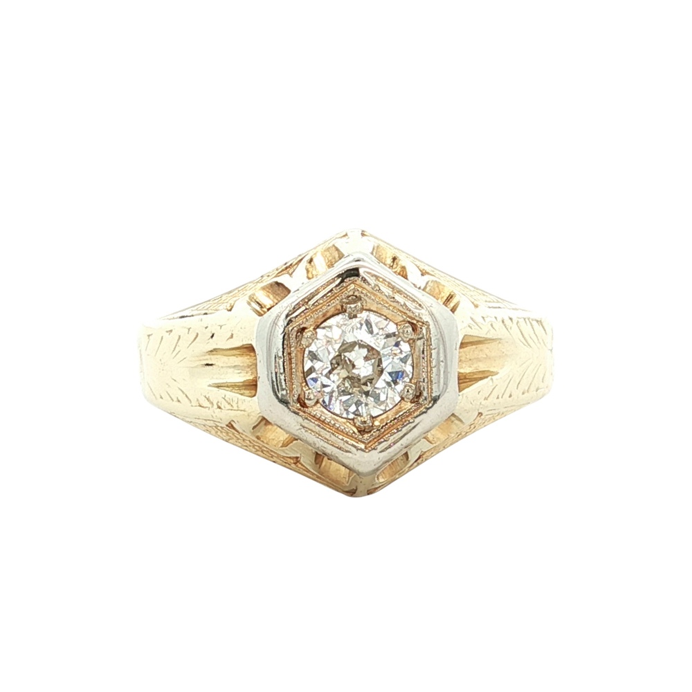 Vintage 14K Yellow Gold 1/2Ct European-Cut Diamond Solitaire Cocktail Ring SZ:10