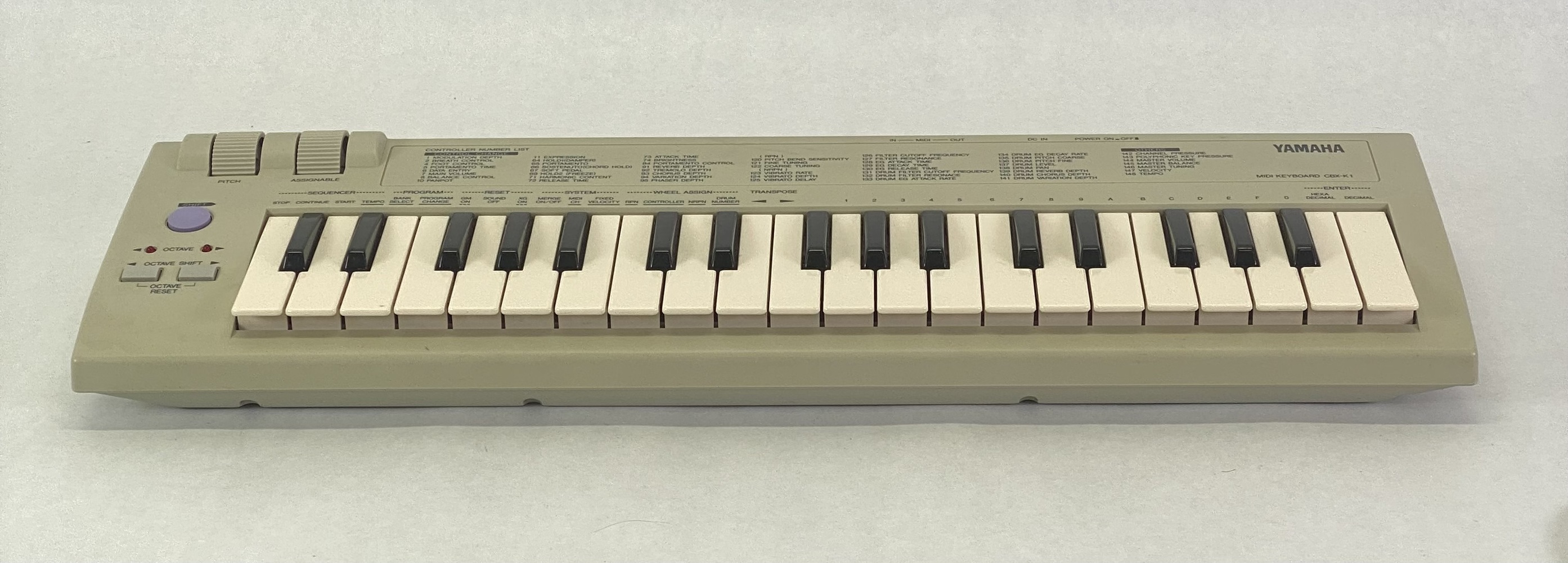 The CBX-K1 is a sophisticated, yet compact MIDI keyboard controller, for use with computers and MIDI music systems. It allows you to play connected tone generators and rhythm machines, and enter performance data to sequencers and computers. It features a sophisticated touch-sensitive keyboard that can be adjusted to cover the full 128-note MIDI range. It also provides a wealth of MIDI controls that allow you to send virtually any MIDI message directly from the keyboard. Moreover, the CBX-K1 has a versatile ASSIGNABLE Wheel that lets you control a wide variety of parameters on your connected tone generator or sequencer in real time. Because of its exceptionally portable size, convenient battery/AC adaptor power supply, compatibility with General MIDI (GM) and XG, and extraordinarily powerful and comprehensive MIDI control functions, the CBX-K1 is an invaluable tool — a MIDI Swiss army knife, of sorts — for all MIDI musicians and performers